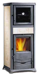 Teplovodní krbová kamna Termorossella Plus Forno DSA - panna (slonová kost) jsou kamna klasického designu s dvojím spalováním, s keramickým obkladem v barvě panna a navíc s pečící troubou v horní části !